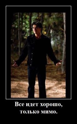 blaze писал(а):Ну как-то правда несправедливы к сценаристы к Деймону. Все его бросают, он всегда одинок, все его ненавидят и дастается ему больше всех других, постоянно кто-нибудь его избивает или пытает.