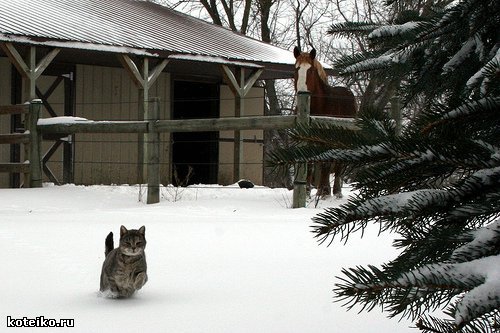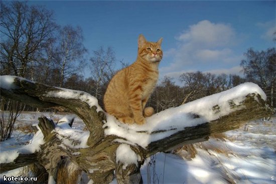 И опечалился кот, да так сильно, что даже отказался принимать молоко две недели. Птица улетела, усы повисли, выпал снег. Чем закончилась эта история - неизвестно. Но соседка со первого этажа рассказывала как второго января из балкона вылетел кот с крыльями и полетел в сторону Юга. Никто ей, конечно же, не верил, хотя она и показывала фотографию с мобилы своему врачу. Мобилу, правда, потом потеряла в сугробе, а саму её забрали в заведение на курс электрофареза для мозга. Но сейчас ей уже лучше, пьёт соду, ходит на аэробику для талии и всегда улыбается, когда вспоминает улетающего на Юг кота.