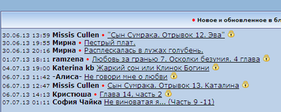 - в блоке выводятся только статьи, отнесенные к категориям "Собственное творчество" и "Фанфики". Пожалуйста, не забывайте указывать нужную категорию при создании статьи.