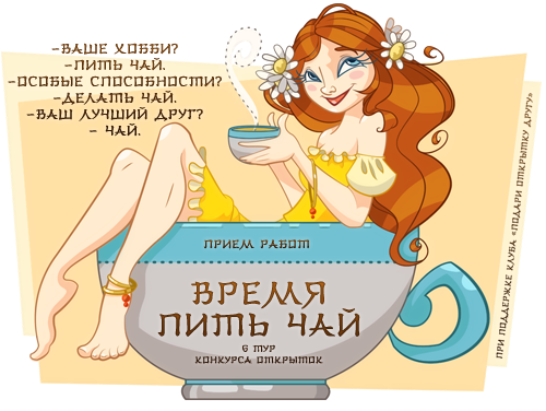 При спонсорской поддержке нашего клуба проходит 6 тур графического конкурса открыток "Время пить чай". Спешите принять участие!