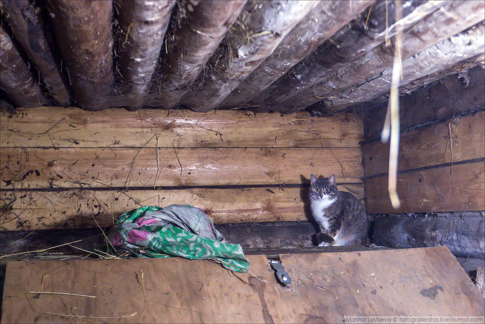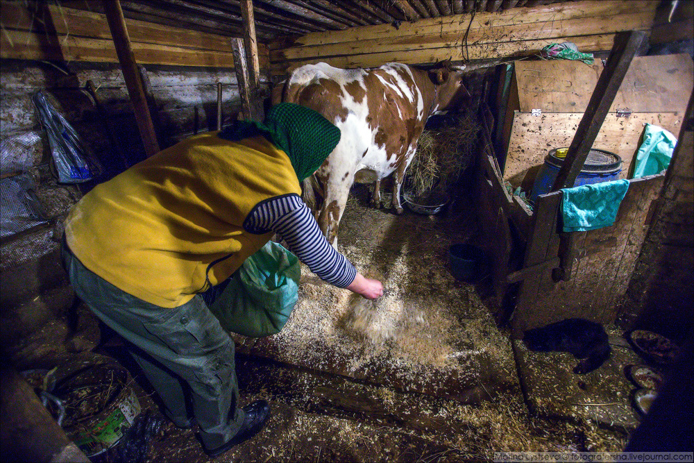 Коровник рядом с домом, два раза в день Людмила приходит доить корову, прибраться, положить еды и прочее, что там полагается корове из удобств.