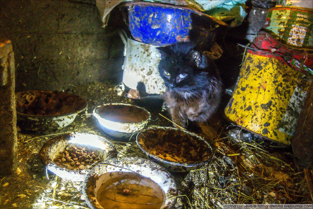 Сейчас Багира почти слепая, из коровника выходит редко, но четко знает, куда идти в случае, если понадобится помощь. Насильно её в квартиру не затащишь, захочет - сама придёт.