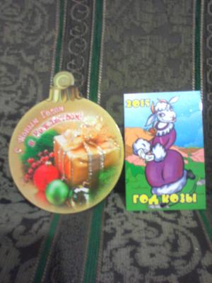 Дарья, спасибо за Новогодний шарик с пожеланиями и календарик с очаровательной козой. А полностью Новогодний конверт вызвал восхищение у всей моей семьи