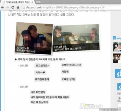 Ранее KeyEast Entertainment выступило с официальным заявлением, в котором сообщило, что Ким Хён Джун / Kim Hyun Joong начал встречаться с девушкой "А" недавно, и объяснило, что насилия со стороны звезды не было, и она действительно сломала ребро, когда пара якобы дурачилась. Между тем новостное агентство Dispatch поставило под сомнение заявление лейбла, сказав, что приведенная в нем информация не совпадает с имеющимися у них в наличии "фактами". СМИ показали две фотографии и переписку между Ким Хён Джуном и его девушкой.