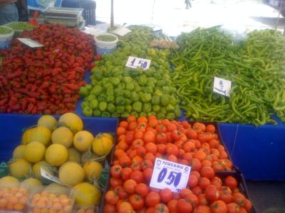 Вот еще кое-что. Обещанный овощной базар и реклама на барахолке.