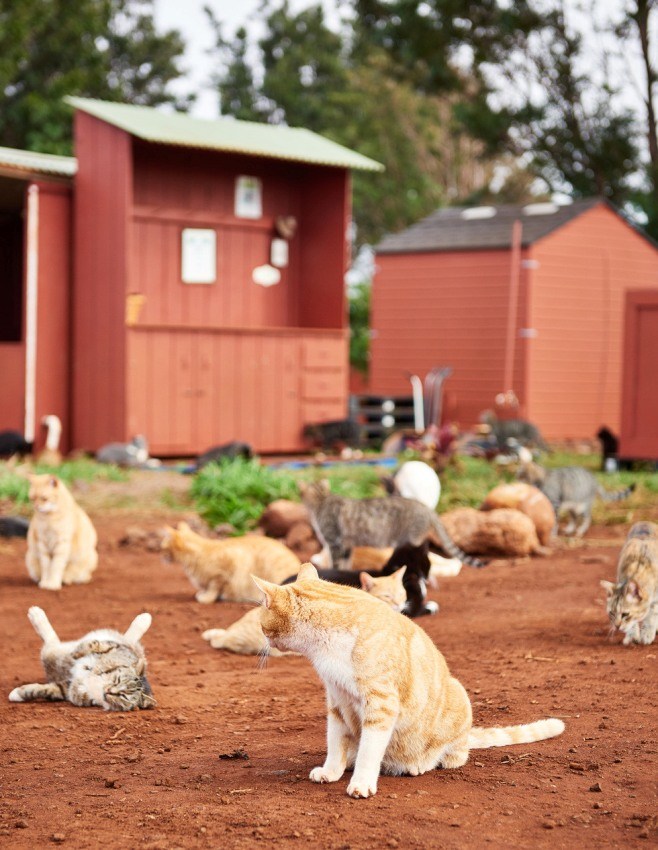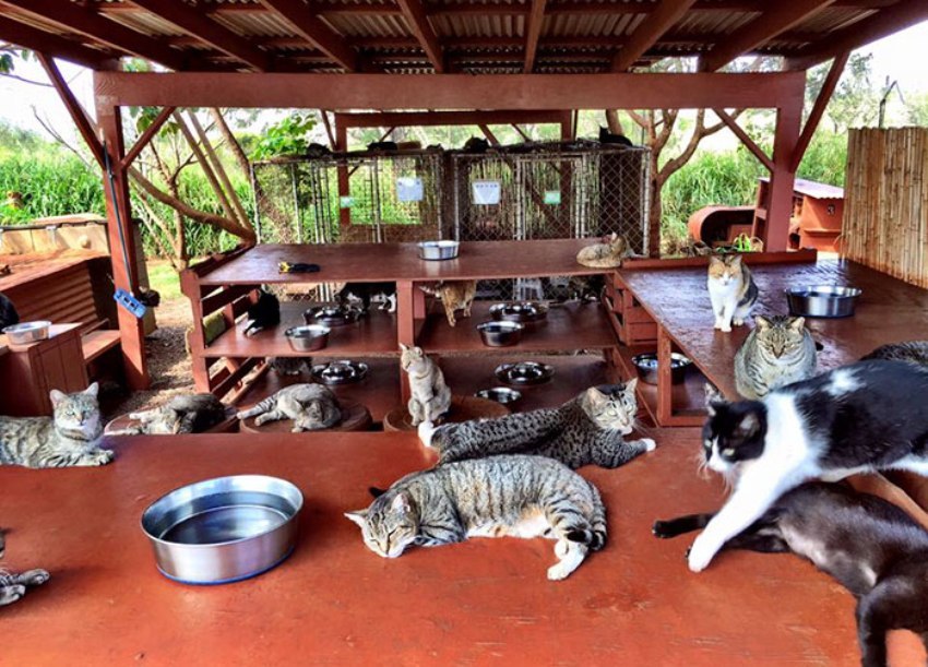 Кошачий рай был создан в 2009 году для спасения кошек на островах. Он теперь открывает свои двери для тысяч любителей кошек в год, некоторые из которых прилетают на остров, чтобы посетить “Гавайских Львов”, как их любовно называют.
