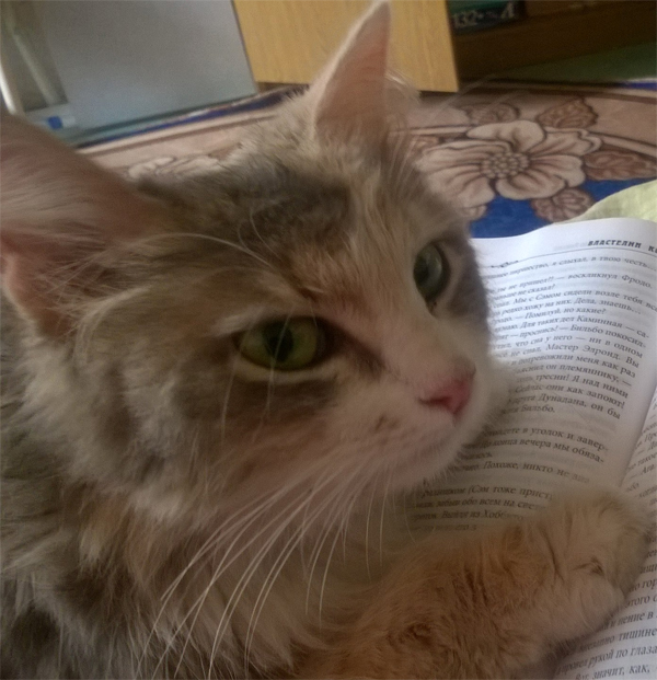 Кошка поначалу была пугливой и никак не могла отогреться. Сейчас Рапунцель живёт с нами уже три года. Она необычайно добрая и умная. Когда мы идём гулять вечерами, она, как собака, гуляет с нами. А дома помогает книжки читать. )) Такие дела.