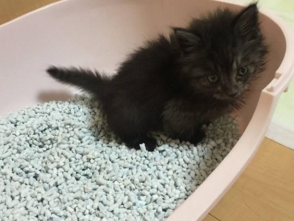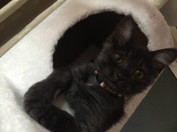 У котенка сильно слезились глазки, ветеринар сказал, что в глаза попала инфекция и предложил лечение. Оно помогло и с каждым днем котенок выглядел все лучше. Он также набирал вес и подрастал. Всего за неделю он удвоил свой вес. Он также оказался очень сообразительным и быстро освоил лоток.
