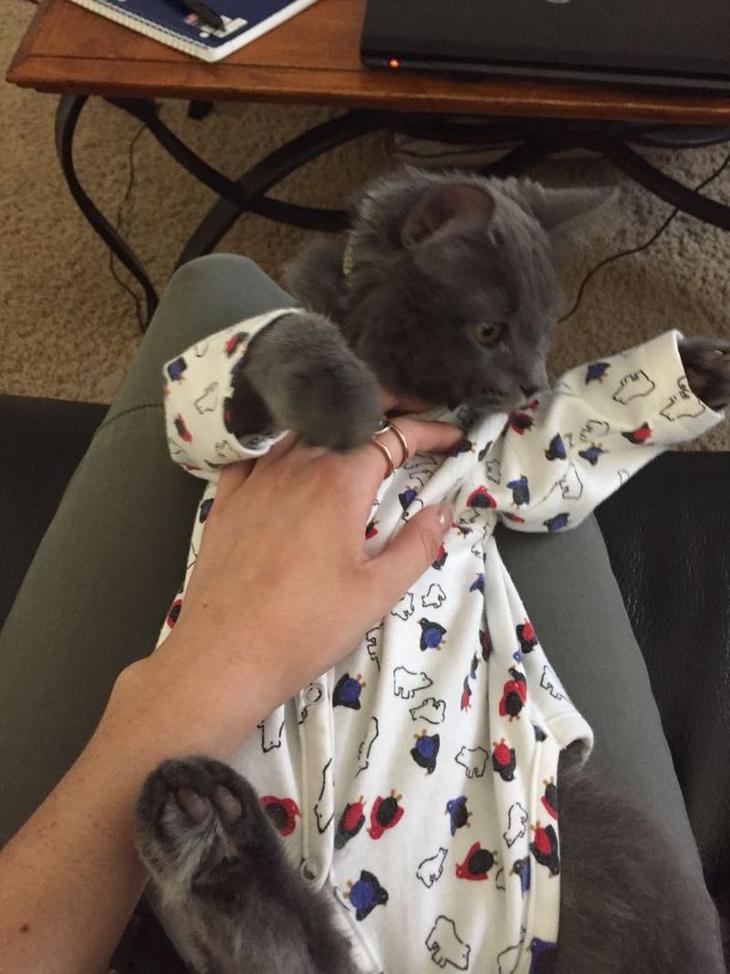 С дочкой в четыре руки его отмывали, потом кормили, муж вычесывал, ну и конечно в шесть рук его гладили