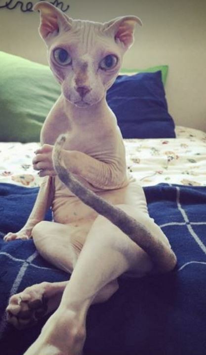 “Я искала лысую кошку” – говорит она “Я любила лысых кошек с детства и обшаривала сайт принятия несколько месяцев”.