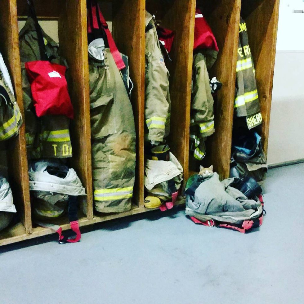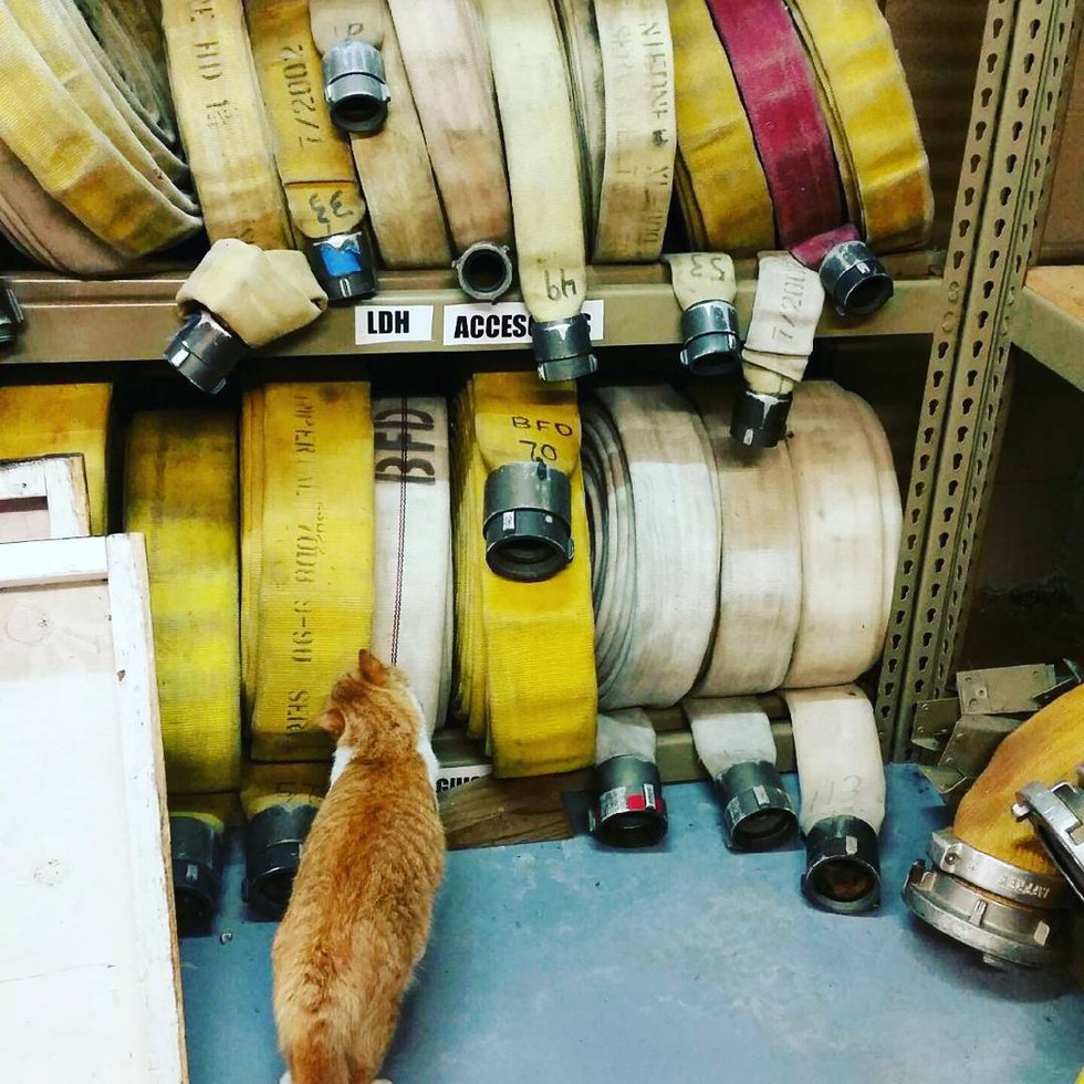 Пожарные очень удивились, когда обнаружили его внутри. Но не стали прогонять котика (ага, еще бы они его прогнали! Это уже его королевство.