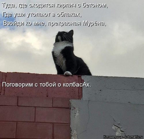 Оксана, я очень рада, что Вам нравятся картинки-котоматрицы. Иногда я сама делаю к ним подписи, но преимущественно просто нахожу картинки с готовыми подписями в Интернете. Также я стараюсь поделиться какой-нибудь интересной информацией или интересным случаем из жизни кошек.