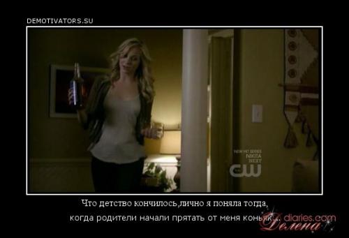 OxIGeN писал(а):Ну сначала Ленка офигела, что она умерла ( прикинь, даже не заметила) Потом Дэймон сказал: или ты пьёшь, или ты умираешь... и видать, пока она соображала, за ними пришли и посадили в клетку. Ленке совсем поплохело и она промямлила Стефан, я умираю и тут наш человек - жевачка проснулся и давай убиваться об решётку Бонька колдует, чтобы Ленку взад обратить, но у неё как обычно " сделать хотел утюг, слон получился вдруг"