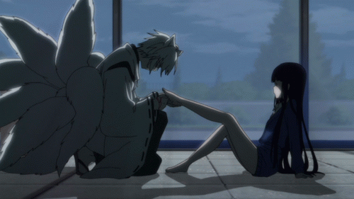 Что-то меня на лисов потянуло, я к ним явно не равнодушна стала после Томоэ. Это уже третье аниме с белым лисёнком, таким пушистым милашкой, что просто слов нет... Конечно, девятихвостый лис это очень необычно как-то, всё-таки с одним было бы лучше, не помню правда сколько было их у Юичи... но что-то из той оперы.