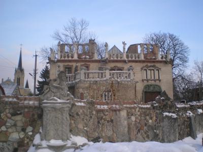 Дом "С химерами". Построен местным скульптором. Находится в старой части города, на берегу речки Стырь