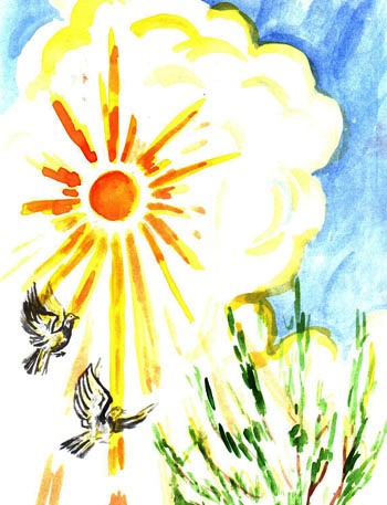 А солнца луч, пробив густую ель,
