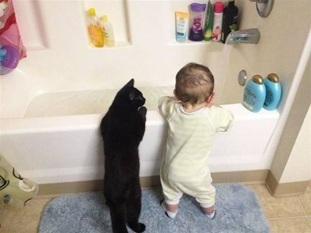 Милые кисы. Черный рядом с малышом так похож на моего первого кота.