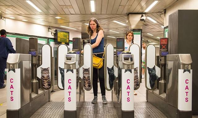 Рекламу в Лондонском метро заменили картинками с котиками из приютов.