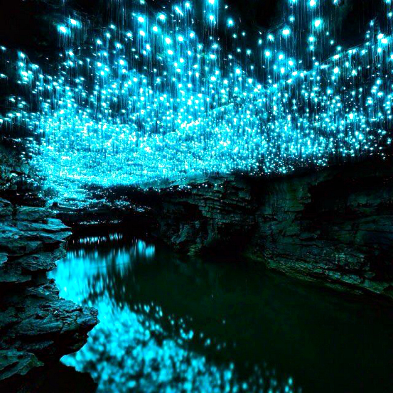Пещеры светлячков Вайтомо в Новой Зеландии (Waitomo Glowworm Caves) — это уникальная природная достопримечательность. Настоящий планетарий под сводами пещеры.