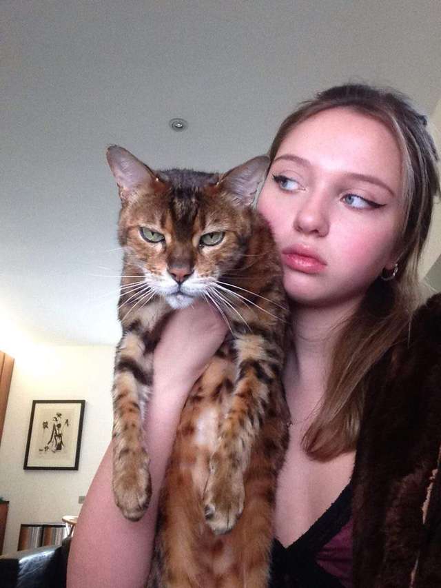 Лиля и её родные очень любят малышку. А вскоре выяснилось, что их кошка обожает фотографироваться. Стоит ей только заметить хозяев с камерой, как она тут же принимает величественную или забавную позу! Наверное, хочет хорошо получиться на фото. :slight_smile: