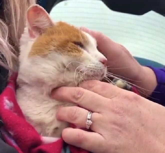 Жизнь Бена и правда висела на волоске, если учесть тот холод и температуру намного ниже нуля. Когда его взяли в руки, тельце мурлыки было ледяным, а на задних лапках даже появились алые раны. Они свидетельствовали об обморожении котика.