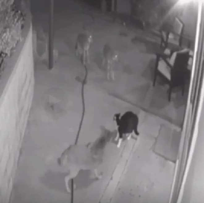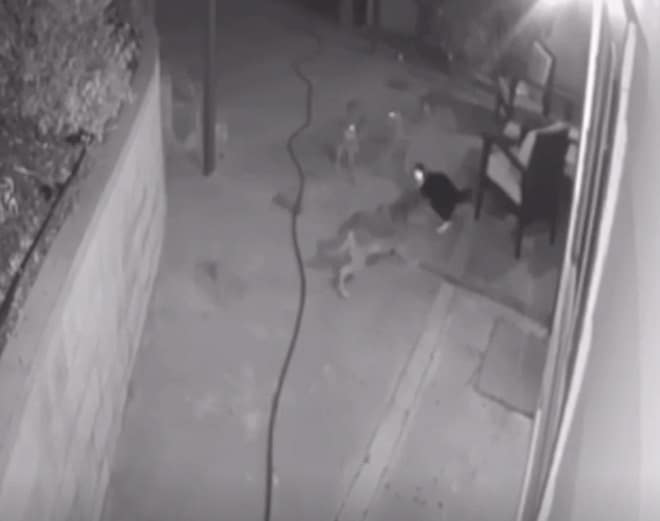 Поздним вечером на кота попытались наскочить койоты. Сразу три диких зверя намеревались атаковать черно-белого Макса. А что же мурлыка? Он вдруг принялся защищаться, шипеть и отпугивать своих недругов!