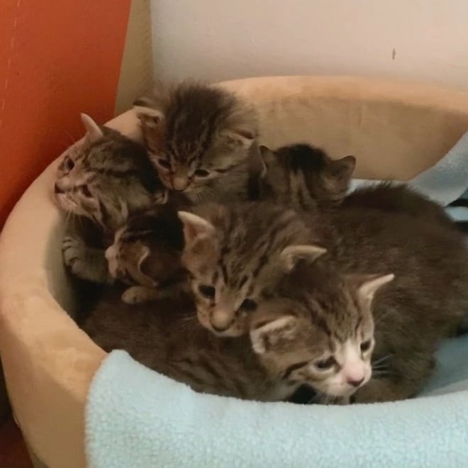 Мама — кошка не переставала мурлыкать, глядя на своих крох. Две «девчонки» и четыре «мальчика» оказались в условиях, которым могли бы позавидовать все бездомные котики. Были рады и волонтёры, ведь им спасать приходится немало животных, а разместить всех в приюте не получается.