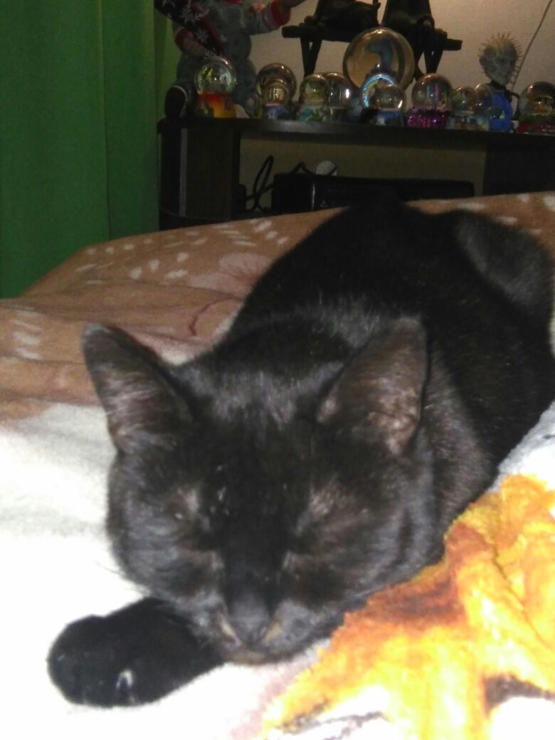 Теперь чёрный МУРлыка живет у Иры, которая души в нём не чает. Когда девушка дома, питомец не отходит от неё ни на шаг. Хозяйка говорит, что её любимец стал поводом скорее вернуться домой. :slight_smile: