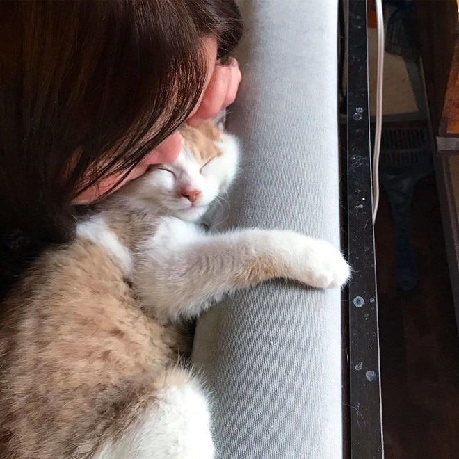 А в один прекрасный день Ирина поняла, что вообще не хочет расставаться с котёнком. Малыш оказался очень умным и ласковым, а девушка вдруг поняла, что она та ещё кошатница. :slight_smile:
