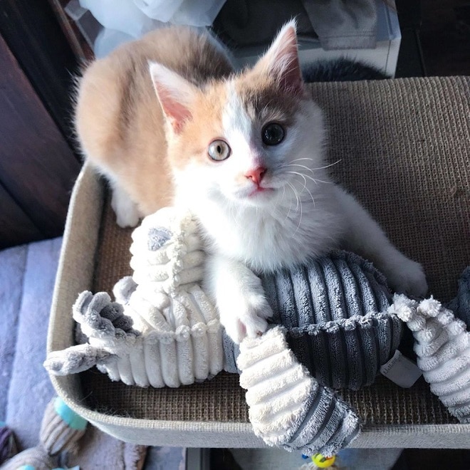 Так, кроха оказался в приюте, но почти сразу же попал на передержку к волонтеру по имени Изабель. Котенка назвали Беорф, и после сложного момента в своей жизни он пошел на поправку. Малютка с радостью принимался за еду и не вызывал опасений относительно своего здоровья.
