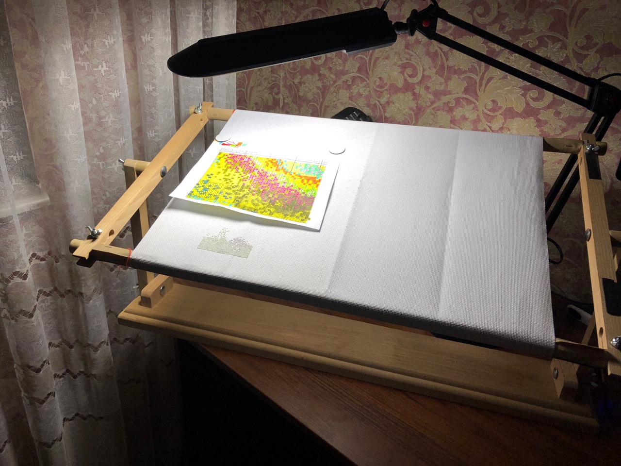Вышиваю на раме,снапах, пяльцах по настроению. Станок у меня диванный от Золотое руно, но я недавно купила тиски моделиста,