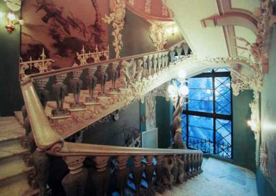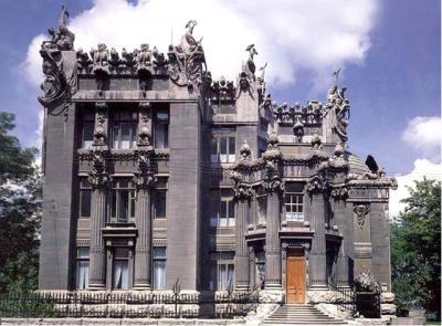 Доходный дом (то бишь, гостиница) архитектора В. Городецкого, который жил и работал тут. Сооружено здание в 1901-1903 годах по проекту самого владельца. Скульптурный декор (автор Э. Саля) отобразил охотничье хобби Городецкого. В советский период использовался как ведомственное медицинское заведение. В начале 2000-х реставрирован, ныне дом официальных приемов Президента Украины
