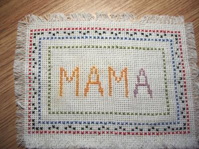 Лена! Какая прелесть! И аккуратно так. В школе на уроках труда, или по собственному почину? Просто у нас щас вышивание на трудах, но какие-то кривые синие грибы выходят...а здесь "МАМА"!