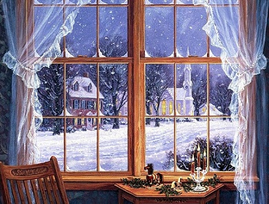В окне с бумажными снежинками,