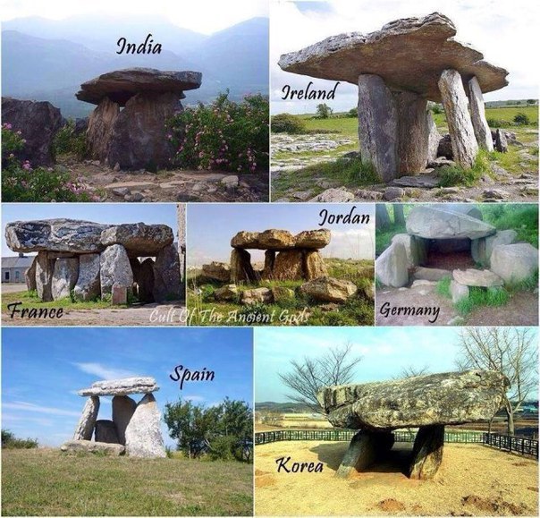 Дольмены – это каменные сооружения, состоящие из двух или более вертикальных камней, поддерживающих большой плоский горизонтальный камень. Вероятно, они использовались в ритуальных целях. Древние дольмены еще один отличный пример удивительного сходства древних цивилизаций, ибо совершенно идентичные дольмены находят в Индии, Испании или Корее. Очевидно, древние традиции были одинаковыми у разных культур, несмотря на огромные расстояния, разделяющие их.