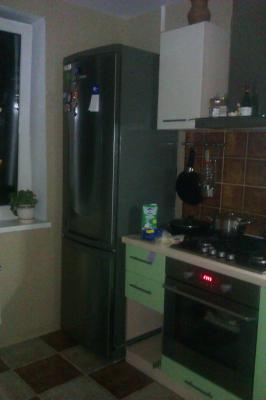 Тіра, у мене майже аналогічний шматочок кухні.! таке ж розташування! І полиця зверху була така ж! Тільки я впихнула новий 2-х метровий холодильник, і її задля правильної вентиляції довелося зняти! Лише дверей на балкон нема і кольори інші - зверху кремовий, знизу фісташковий. Тільки на дірку у меблі не звертайте уваги - це автозапал зламався, витягла полицю, прийдеться шукати майстра.