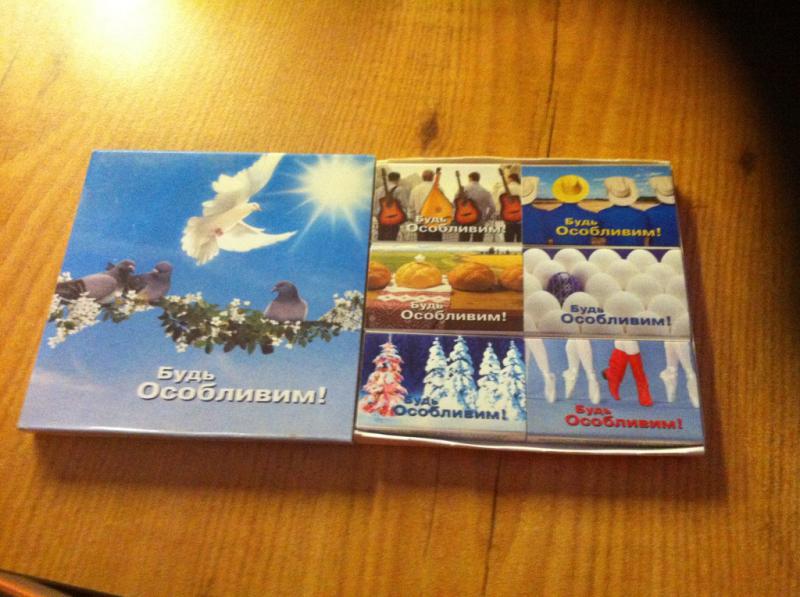 , я так расстроилась, но спорить с ними не было сил. Тебе еще предназначались сувенирный набор спичек "Будь особливим" (в переводе будь особенным). Придется любоваться только на картинке :(