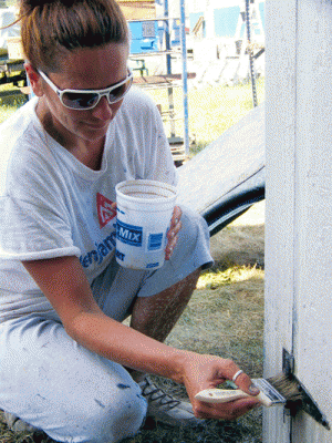 В минувшую среду Клаузер пришлось выдержать 95-градусную жару по Фаренгейту (35 °C) и палящее солнце, чтобы покрасить ржавеющие петли на дверях гаража Чайлдерса. Перед ней стояла задача за две недели покрасить старые трейлеры в парке в новый цвет, а затем покрыть их текстурированными красками, чтобы они выглядели старыми.