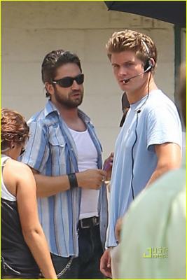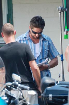 Вот человек, который дублирует Джерарда Батлера на съемочной площадке. Тот, что в очках, так сказать, «настоящая маккой», а справа дублер Тим Коннолли. В кино Тим всегда там, где Джерард. Персональный инструктор и чемпион мира по Тейквандо, ростом 6 футов и 1 дюйм, исполняет опасные трюки за красавца из Глазго в нескольких фильмах, включая «300». И теперь Тим снимается в фильме «Священник с автоматом», где Батлер играет роль вставшего на путь исправления байкера Сэма Чайлдерса.