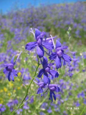 А те поле де я маки фотографувала поступово стало синього кольору. Там цвіли квіти, не знаю як звуться, бабуся їх називала "сокирки". Тепер вони відцвіли і починають рости і цвісти інші. Наскільки я пам"ятаю, в народі їх називають "ведмеже вухо". Здається це ще й лікарська рослина. Жаль, що фотокамери з собою не було, щоб зняти цю "трансформацію".