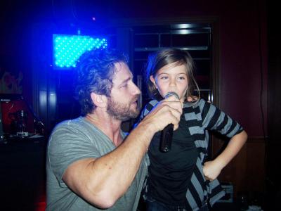 А вот и Детройт передает нам свой летний привет в виде фотографий Джерарда Батлера, поющего караоке. Благодарить за снимки от 1 августа нужно Catie Cullari, разместившей их на своей страничке в Facebook.