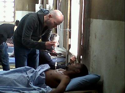 В Интернете мелькают скудные сведения о том, что съёмки “Проповедника с пулемётом” близки к завершению. Что Джерарда Батлера якобы видели в одном из ночных клубов “Оксфорд”. А ещё прошла новость о том, что кто-то из съёмочной группы погиб в ДТП в лобовом столкновении. Если это соответствует действительности, то wrap party (прощальная вечеринка), которую обычно устраивают по окончании съёмок, будет омрачена, если вообще состоится. Вот фотография режиссёра Марка Форстера - то ли в реальной больнице, то ли в перерыве между съёмками (надеюсь, последнее).