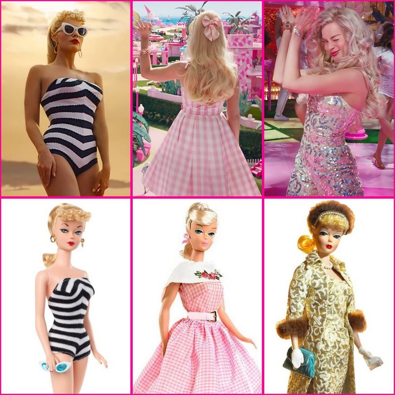 Разработка костюмов началась с самой первой Барби 1959 года. Так на Марго появился черно-белый слитный купальник, красная помада, синие тени для век и каблуки.