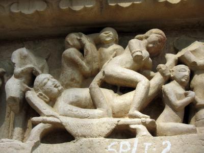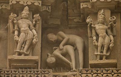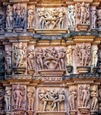 На внешних стенах храмов изображены картины секса. Изображения выглядят довольно откровенными и даже неприличными. Считается, что если, увидев их, человек развернется и сбежит, он никогда не сможет достигнуть божества внутри (внутри храма сексуальных сцен нет). Внутри храма - образ Бога, а снаружи - изображения, картины секса, страсти, совокупления.