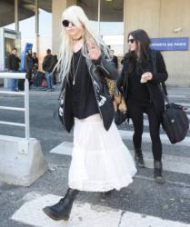 Тейлор Момсен, ты ли это? И в самых смелых фантазиях мы и помыслить не могли, что в гардеробе певицы найдется что-то длиннее трусов и закрытее чулок. Вчера Тейлор прилетела в Париж, где выступит с Pretty Reckless. Билеты, кстати, раскупили, как горячие пирожки в концлагере.