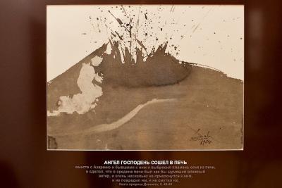 8. Эту работу вблизи очень сложно увидеть, но на расстоянии она раскрывается. Вблизи - лишь пятна. Вдали - печь в виде жерла вулкана, а белое пятно - фигура преклоненного ангела