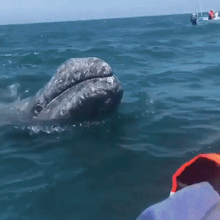 Детеныш кита хотел что бы его погладили.