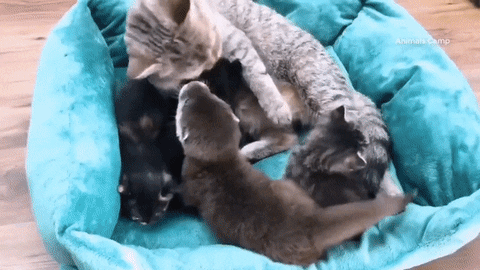 На всех у кошки мамы хватает любви и на котят , и на маленького бобренка.