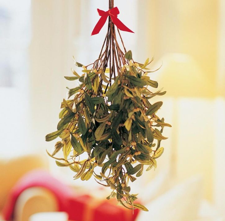 омелу и целуйте) Она, вот, на вашем пути к ёлке)
