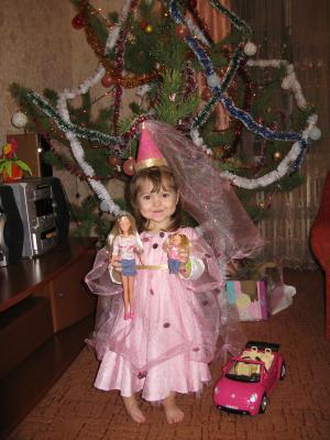 И еще, помните, я просила посоветовать насчет новогоднего костюма (что-то розовое)? Так вот что у меня в конце-концов вышло (наконец диск сделали):